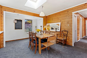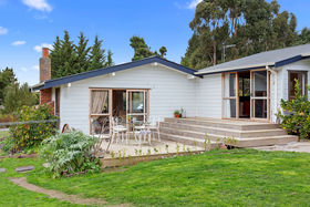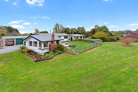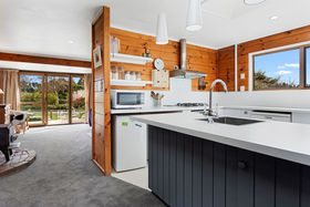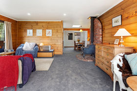 The home is positioned for all day sun and offers open-plan kitchen / dining / family room which flows out to a north-facing deck. Separate lounge with an office / library area, three bedrooms, family bathroom, laundry and extra toilet. Large free-standing log fire and an open fire for heating. Hot water is gas.