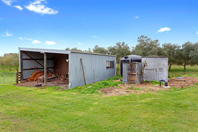 Double garage with separate lockable workshop and store room, two-bay back to back shed, own well, five paddocks, mature olive trees, young walnut trees and great shelter.