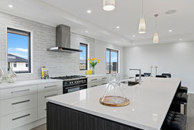 This stunning home is a are real statement starting from the minute you walk into the spacious entranceway. The Super sized kitchen /living area with raised ceilings is the heart of the home. Complete with a designer kitchen including walk in pantry, high end appliances, stone bench tops etc. In addition to the large kitchen /living area there is a spacious separate lounge, ideal for those quieter occasions.