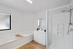 There's space for everyone between the open-plan kitchen/living/dining, separate lounge with a feature cathedral ceiling, and an office.